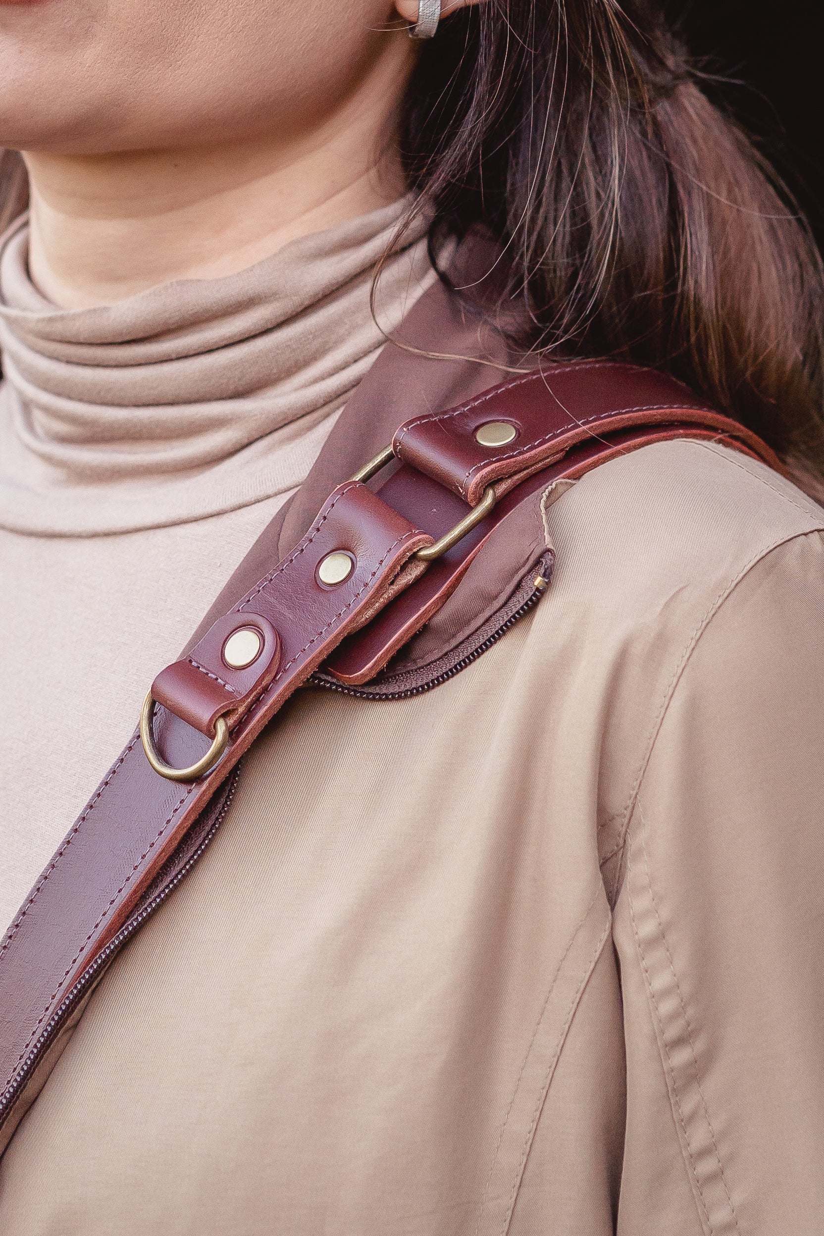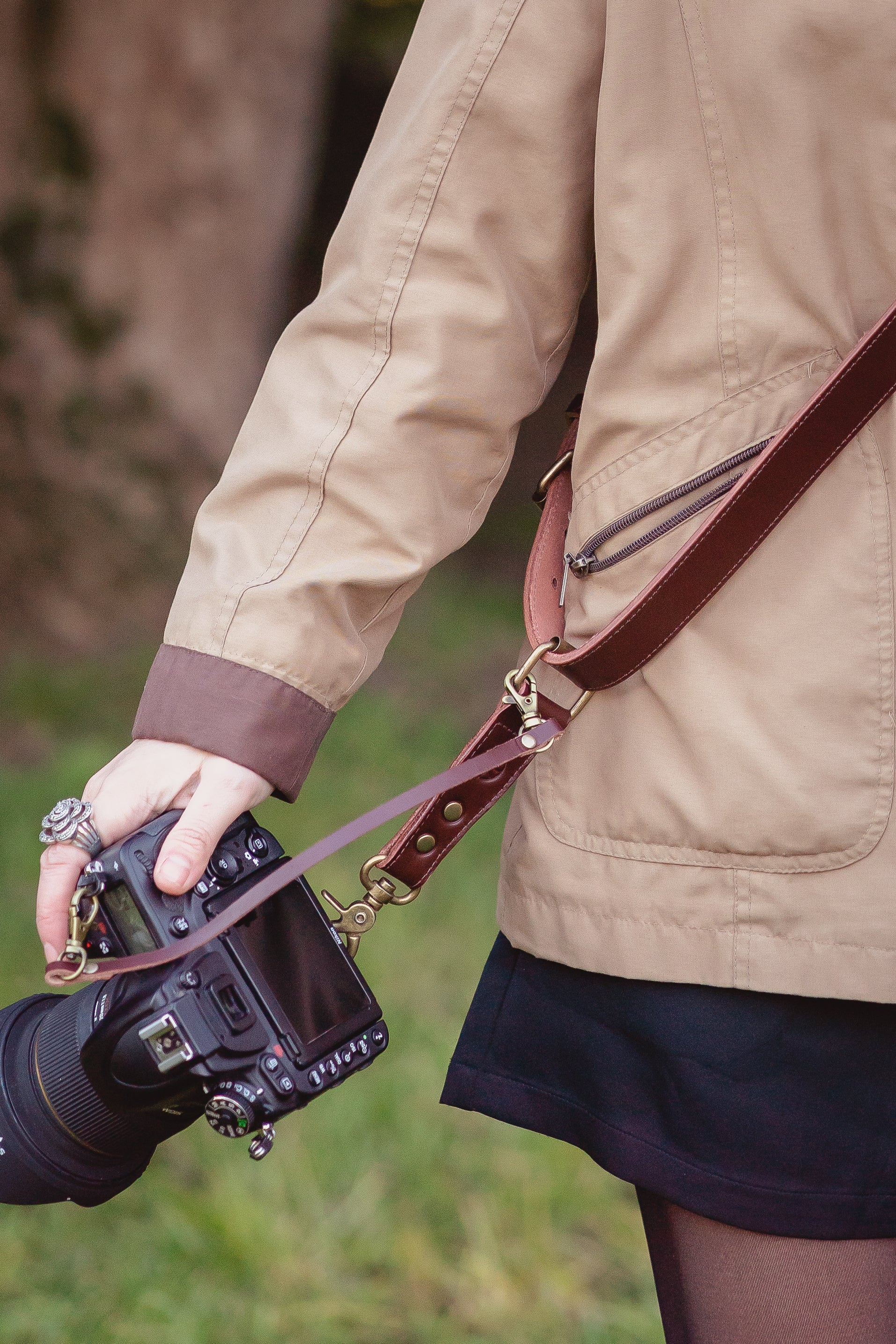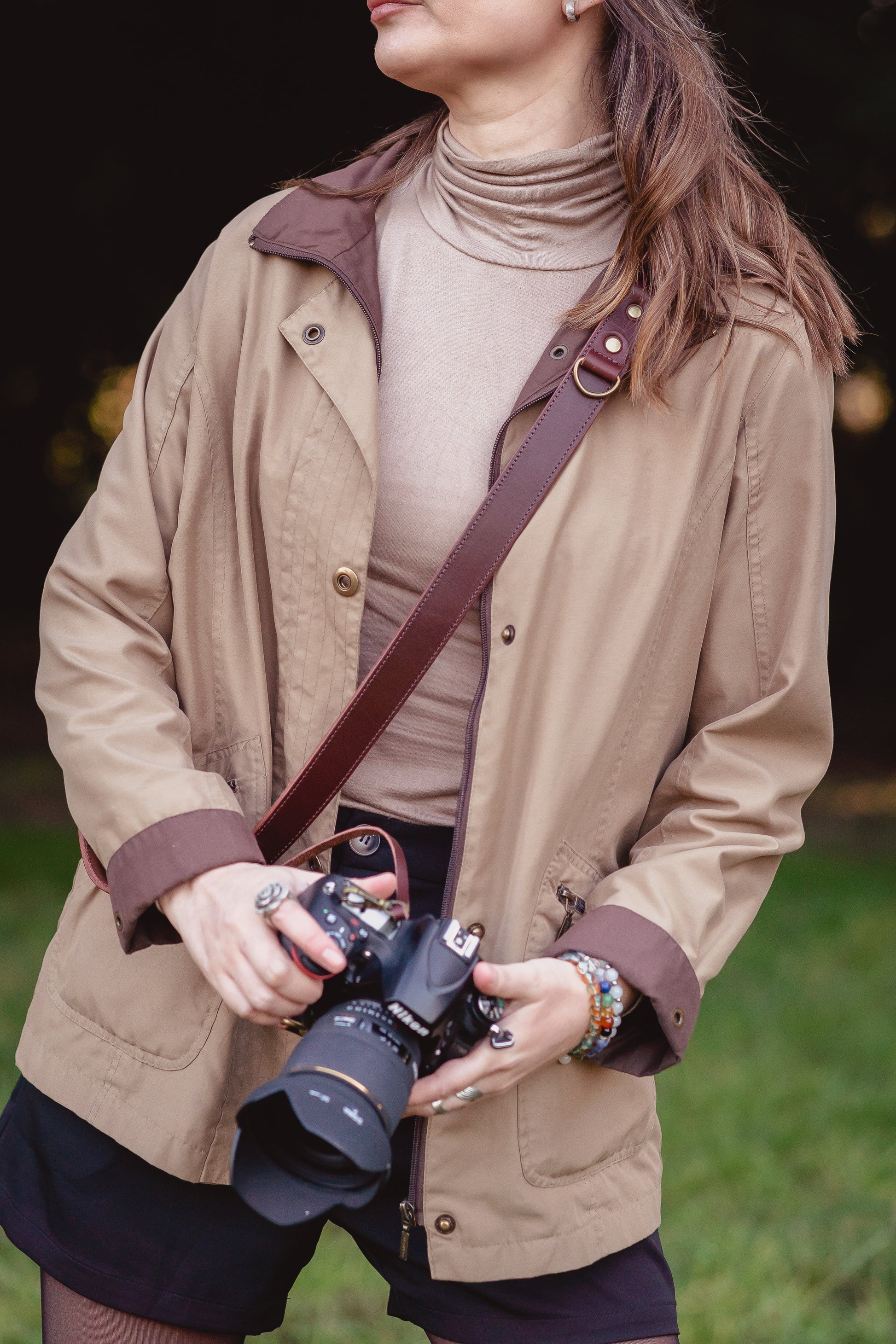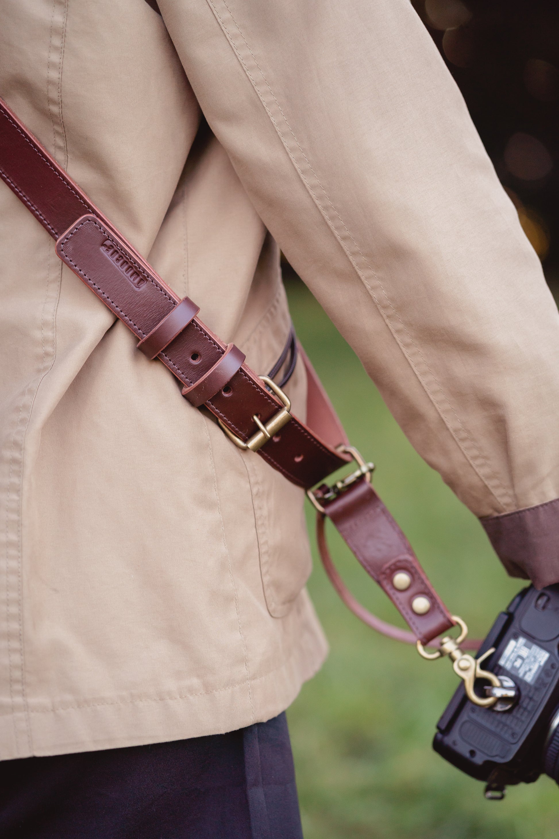 Correa de cámara hecha a mano en cuero sueleta | Amunche